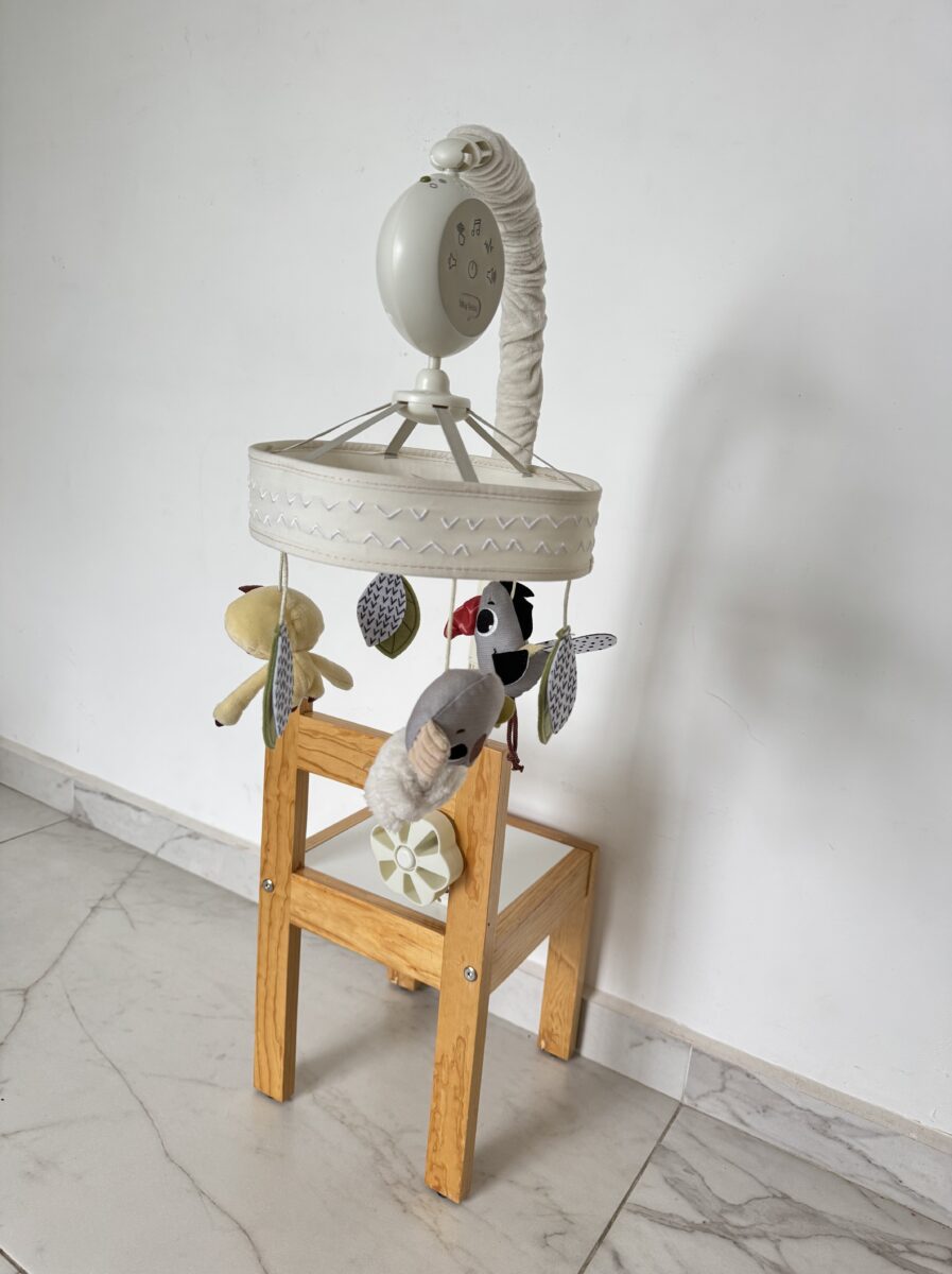 Movil : giratorio, musical con muñecos en dos vistas para recién nacidos, hace ruido Sh sh sh, ruido blanco y sonido de latido de corazón