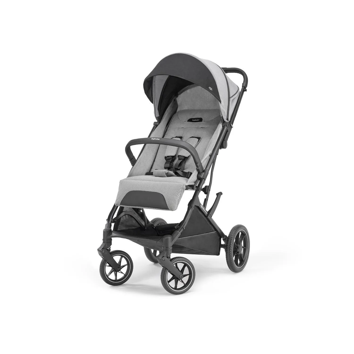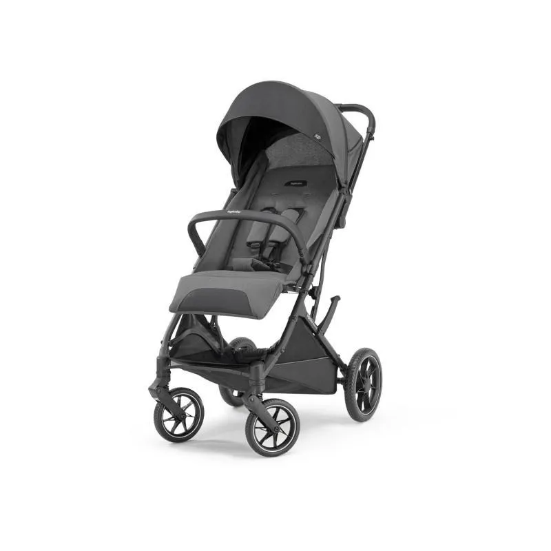 Una sillita de paseo ancha y robusta , con ruedas grandes , pero al mismo tiempo ligera y compacta.