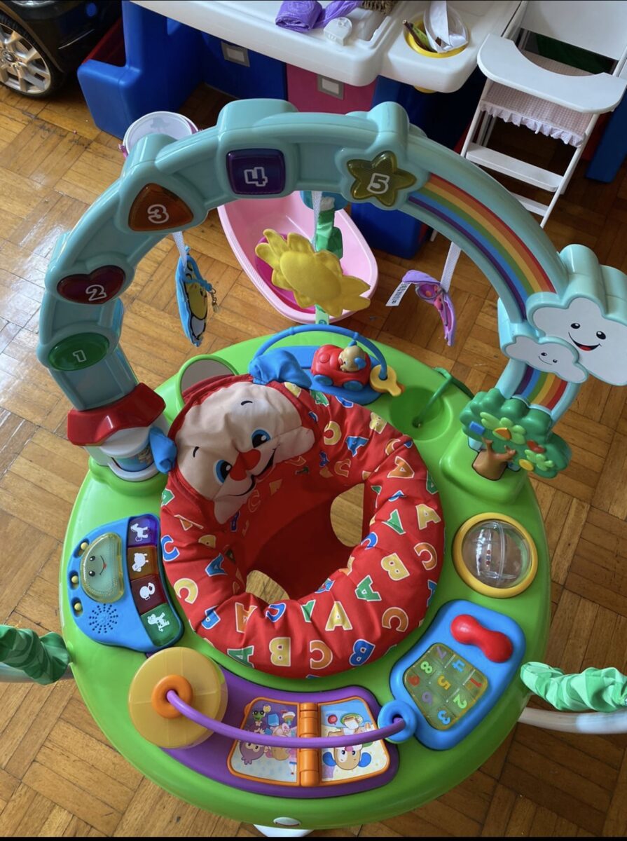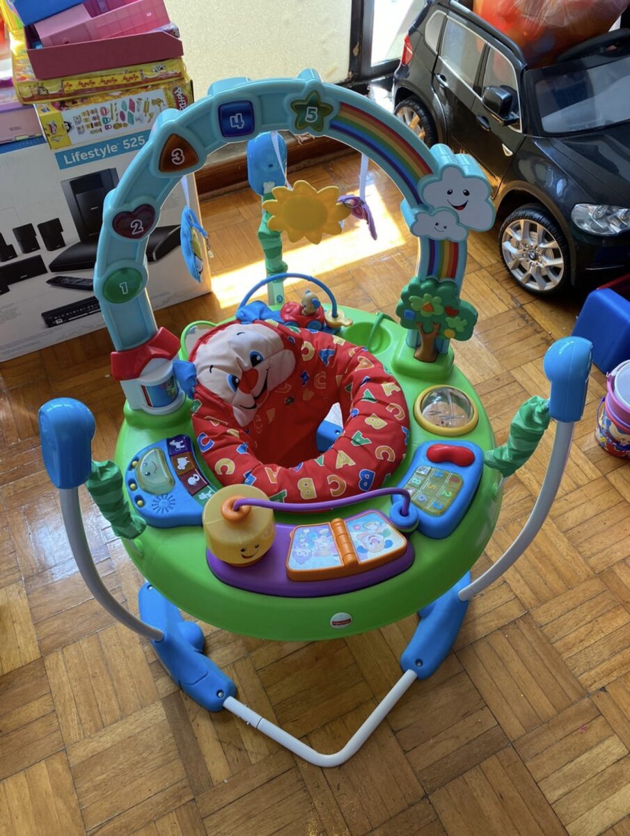 Música, luces y juguetes de “entrenamiento”. Listos para la diversión de los saltos de tu bebé.