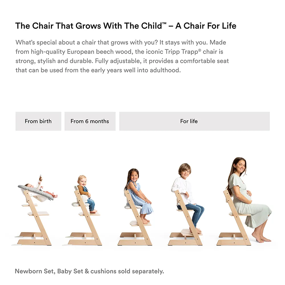 La silla alta Tripp Trapp es una inversión en la comodidad, seguridad y bienestar de su hijo durante toda su vida.