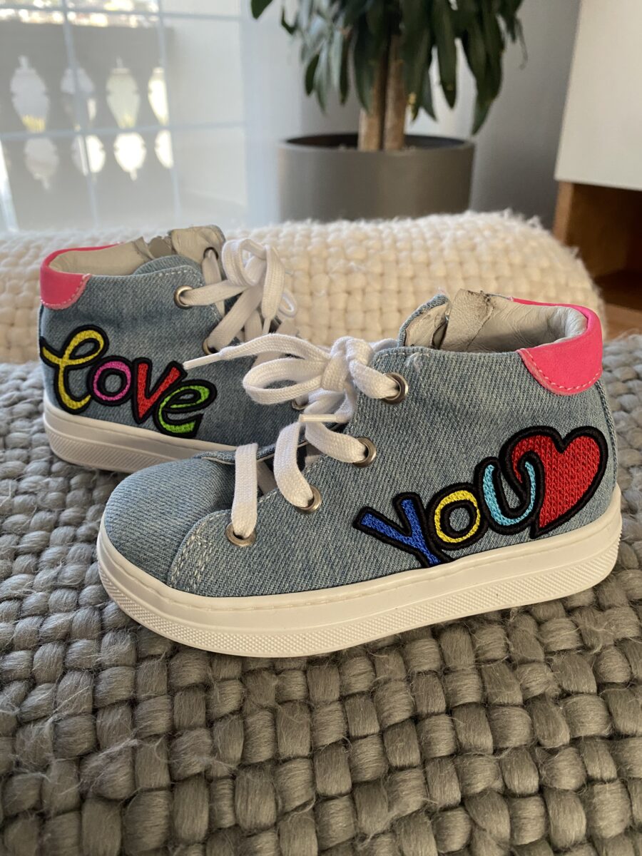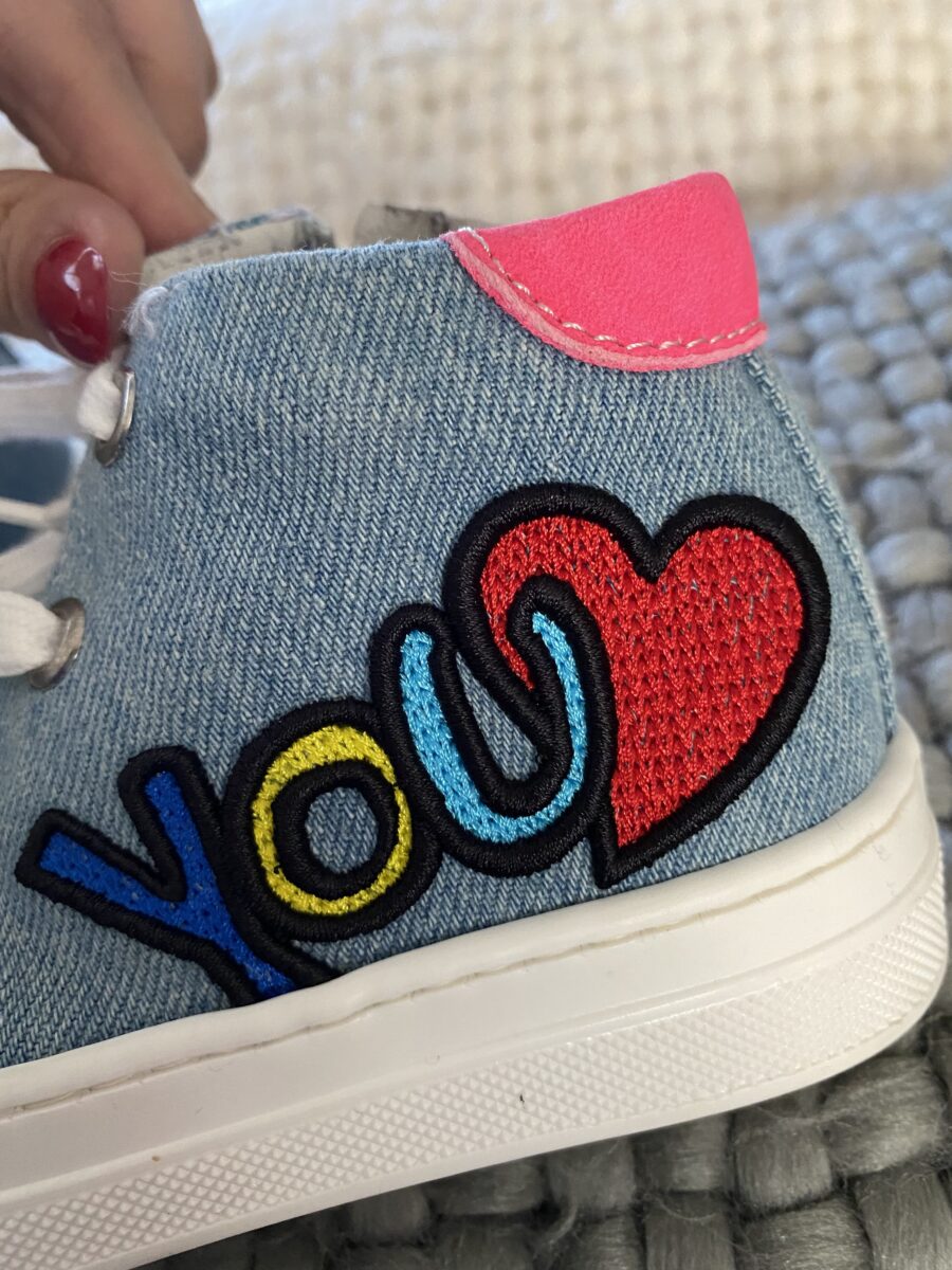 Tenis de mezclilla para niña, 15 cm, AM 66