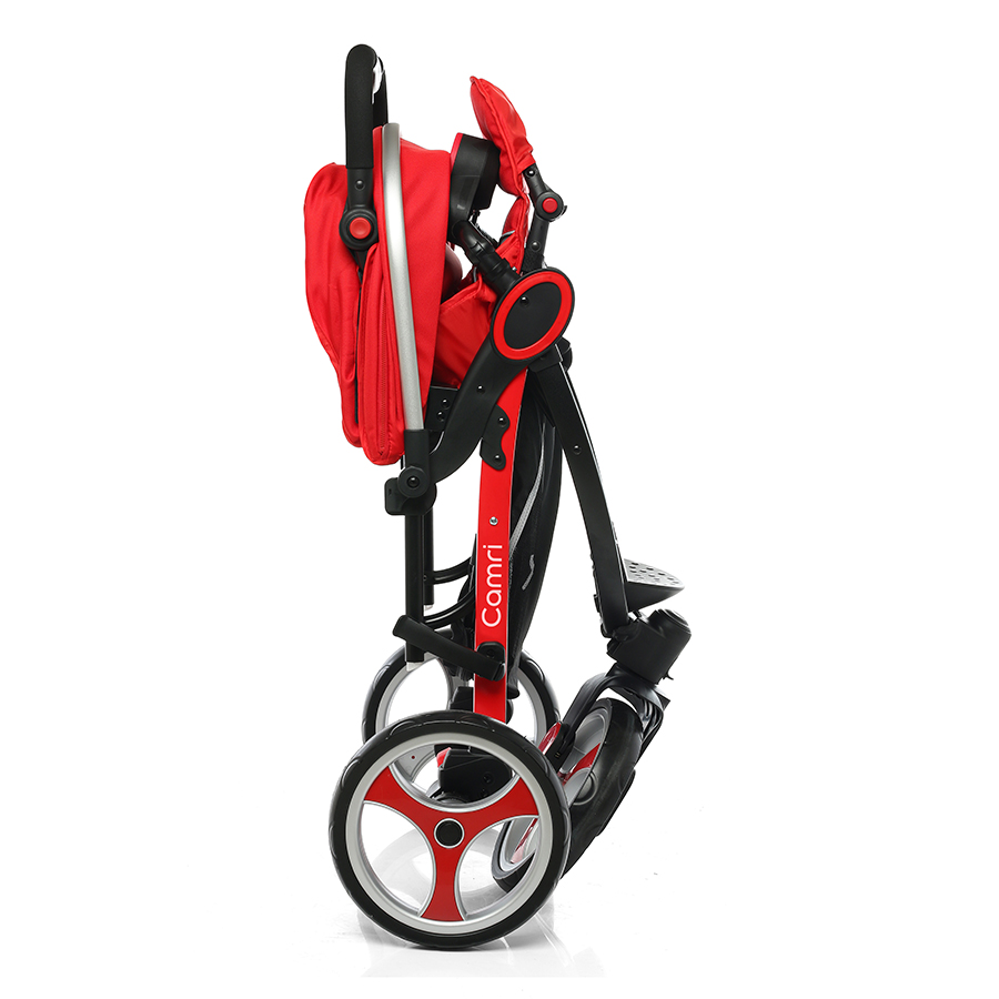El nuevo “Camri” se presenta con su estructura de aleación de aluminio, la cual reduce significativamente su peso y sus tres ruedas de 11”, la delantera fija o móvil y 2 ruedas traseras con sistema de freno One Touch, lo cual lo hace ideal para todo tipo de terrenos. Comodidad extra para grandes y chicos, gracias a su manija y respaldo ajustable de 3 posiciones, como así también su canasto portaobjetos de gran tamaño y el posavasos lateral, son sólo algunos de sus beneficios. Practicidad, gracias al sistema de plegado one hand fold, permite que el traslado y guardado del coche no sea una molestia. Seguridad para los chicos y tranquilidad para los grandes, gracias al cubre lluvia incorporado y al sistema de cinturón de seguridad de 5 puntos. La butaca GRUPO 0+ permite que transportar al niño tanto con las manos como en un vehículo de motor sea una tarea sencilla.