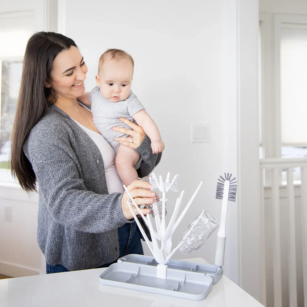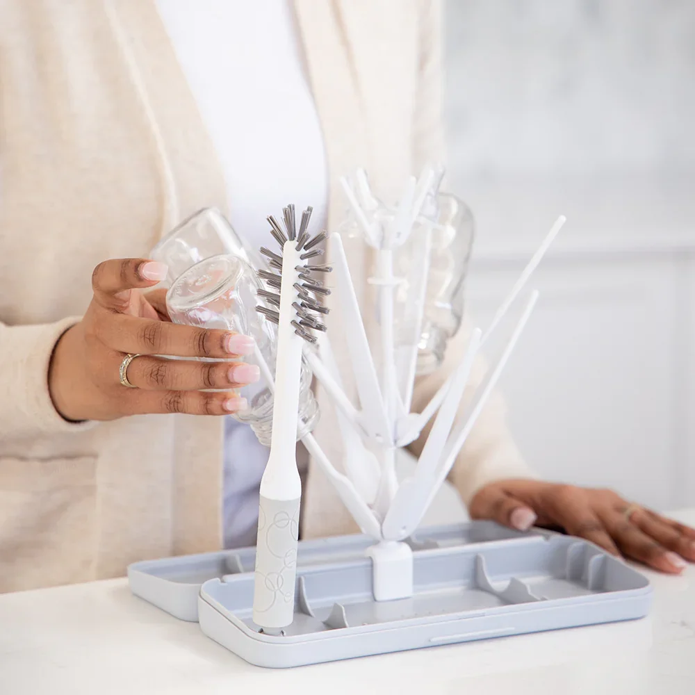 - – Juego de 4 piezas: Incluye rejilla de secado, estuche, cepillo grande para biberones y cepillo para tetinas más pequeño.