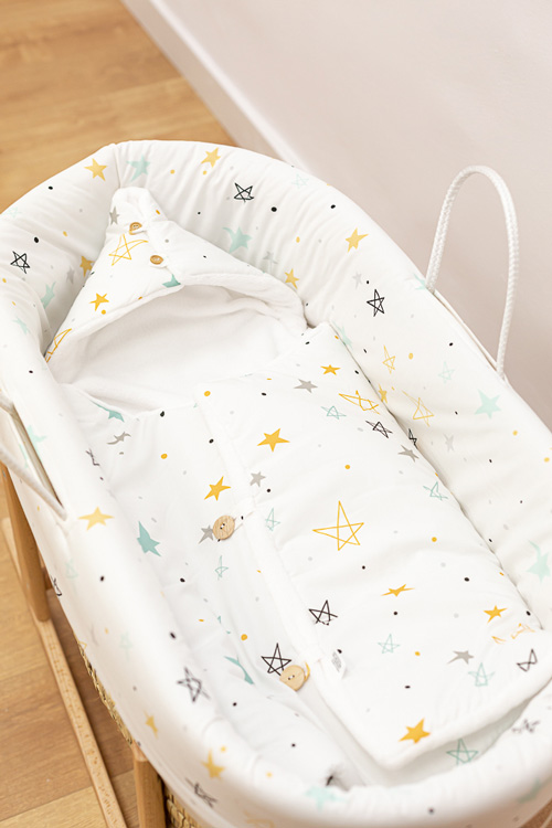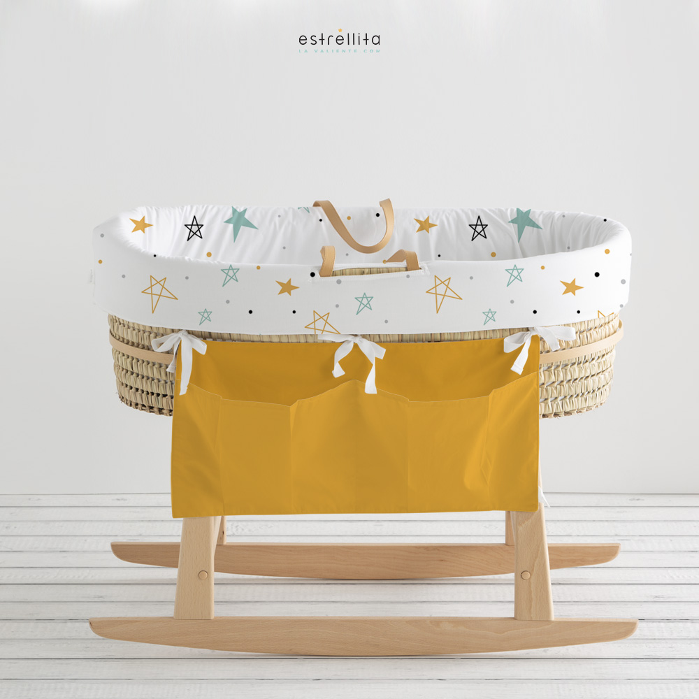 Vestidura para capazo noche estrellada mostaza es el complemento ideal para vestir el capazo de tu hija o hijo. Con él le proteges de los roces y de los golpes que se pueda dar con las paredes del mismo. Un hecho a tener en cuenta ya que los capazos suelen realizarse de mimbre u otras fibras vegetales.