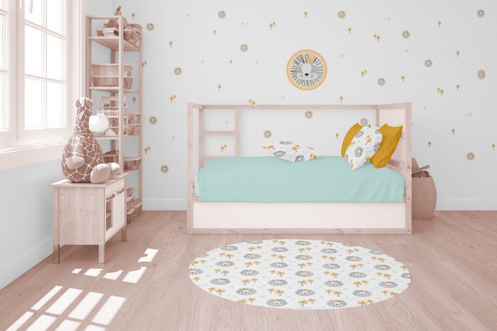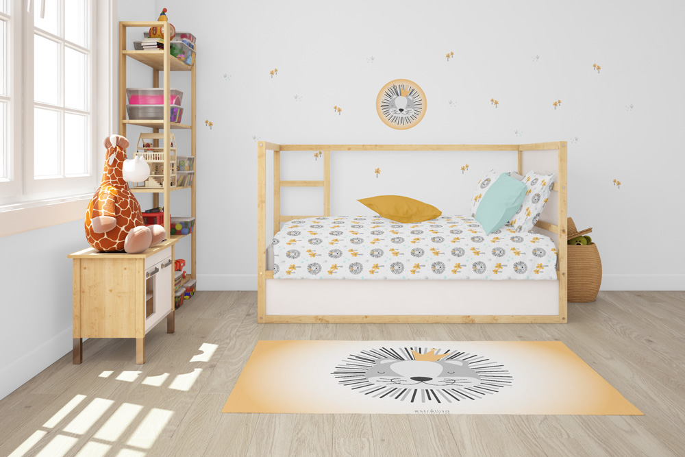 Nuestro vinilo Carita Rey de la Selva mostaza es un complemento decorativo muy divertido que se puede colocar en paredes, tanto si son lisas y con otro tipo de terminaciones rugosas como las que han sido trabajadas con gotelé. También se puede colocar sobre superficies de mobiliario para dar un toque único y divertido a la habitación de los más pequeños.